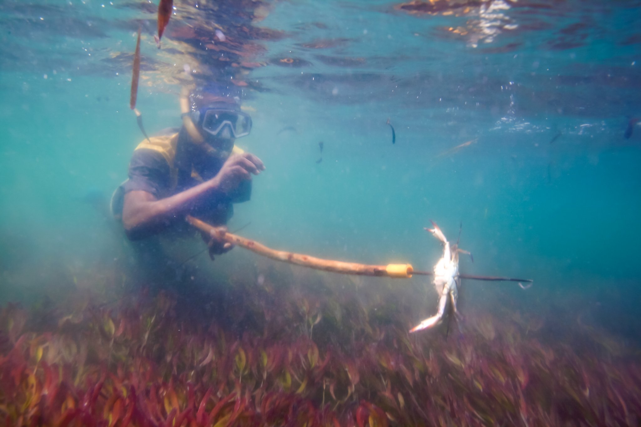 In the shallows, the littoral zone is alive with small, deliberate movements. Fishermen probe the water with long steel spears tipped with sharp barbs. On closer inspection, their main catch is crab, with the occasional dogfish or sea cucumber. Everything is taken by hand, or nearly so.